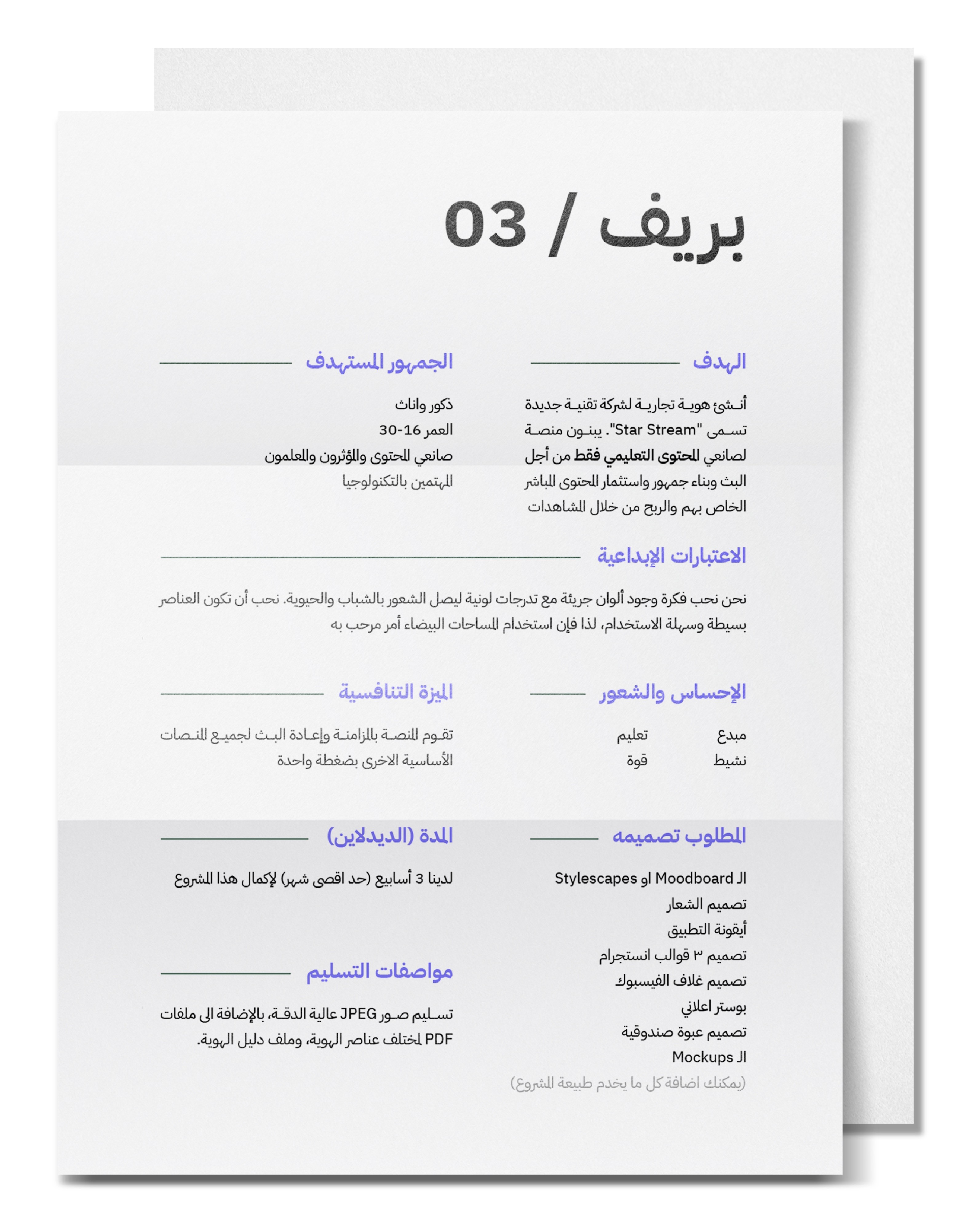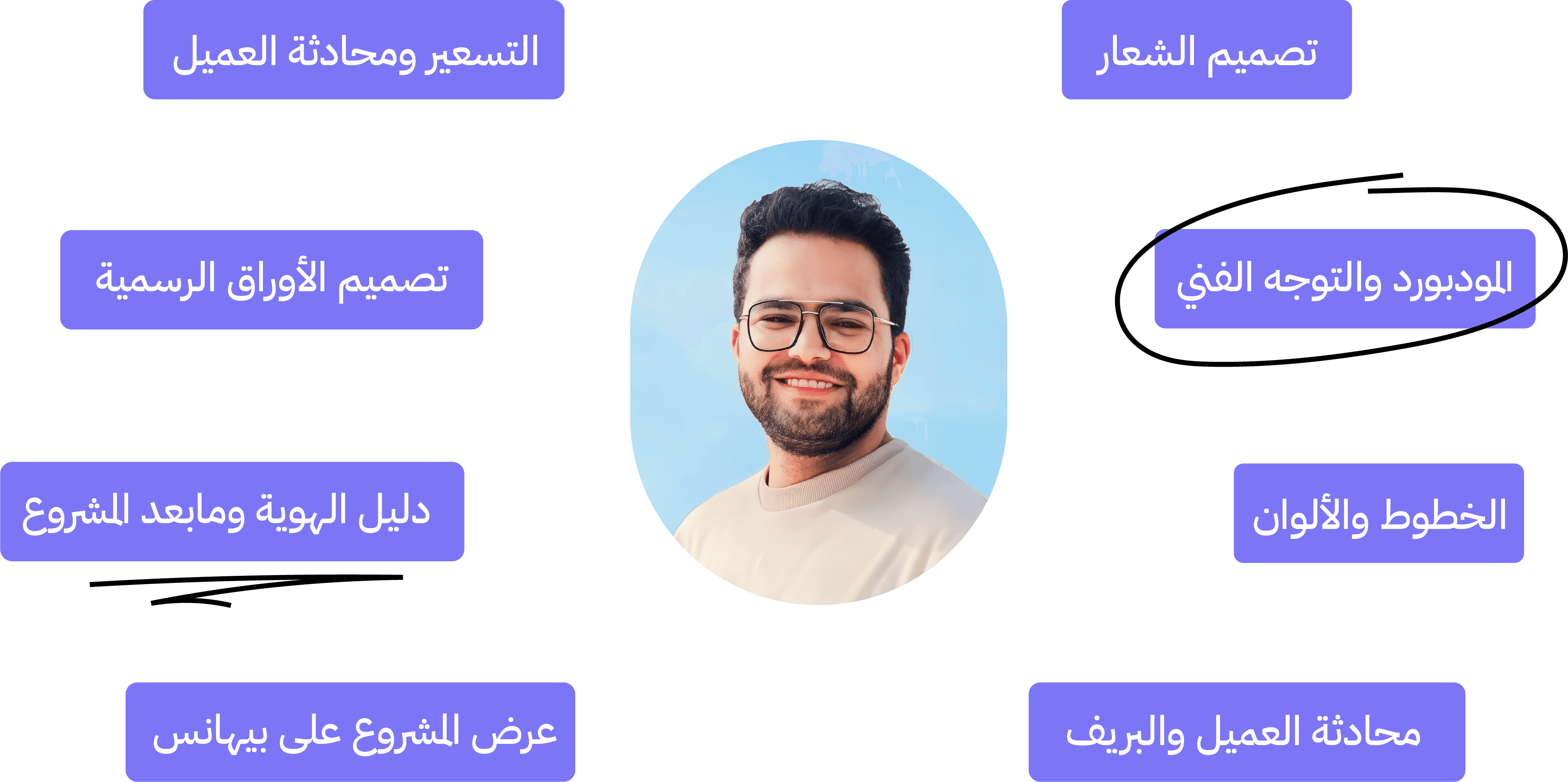 سيتم تأهيلك للحياة العملية في مجال تصميم الهويّات البصريّة كمستقل، ليس فقط مهارة التصميم وإنما مهارة العمل وإدارة مشروع كامل من البداية إلى النهاية.